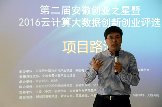经过一个多月的征集加初选,4月22日,“第二届安徽创业之星暨安徽省云计算大数据项目路演秀”在蜀山区洪泰(中安)创新空间圆满举行。安徽省经信委软件处副处长叶圣出席并致辞,中国电子学会副秘书长林润华,中兴通讯云计算首席架构师罗圣美,中国大数据专家委员会委员、中科大教授俞能海等分别担任路演导师对26个项目进行实时点评。安徽省软件行业协会理事长汪炳兴;安徽省云计算产业促进会会长熊焰、秘书长吴鑫坤;安徽MBA联谊会名誉主席司马文龙;中安创谷副总经理、洪泰(中安)创新空间负责人杨明等悉数出席。