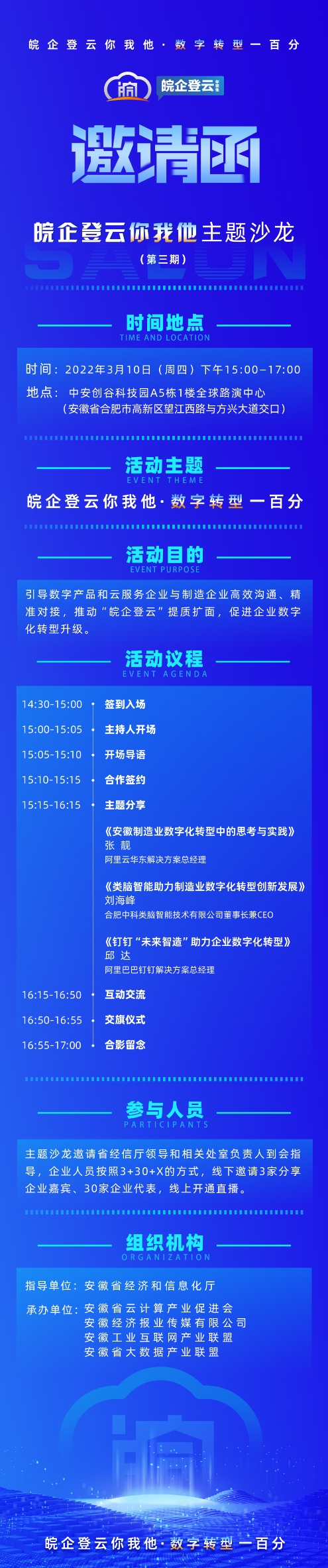 云时代,建好云、用好云!企业究竟要登哪个云? 3月10日,在合肥市中安创谷科技园,“皖企登云你我他”第三场主题沙龙中将有答案。