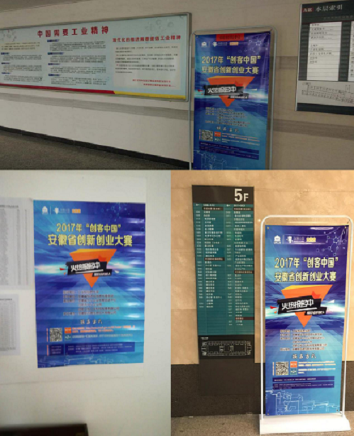 滁州市经信委抓住时机,积极对接滁州学院团委和滁州各二级学院,鼓励大学生参加本次“创客中国”安徽赛,在该校创业中心等显著位置都张贴了本次大赛的宣传海报,起到了很好的宣传效果。