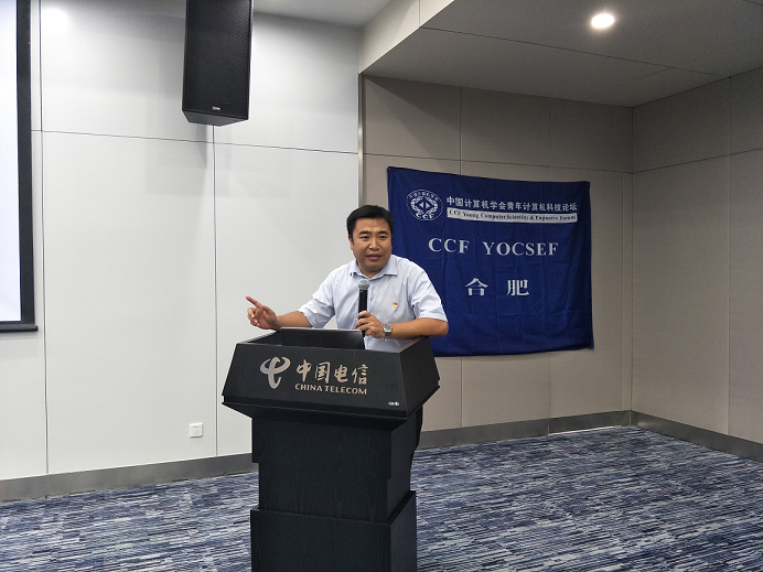 论坛引导发言环节由CCF YOCSEF合肥副主席孙耀晖主持,安徽省经济和信息化委员会信息化推进处副处长谭昱国为论坛致辞。